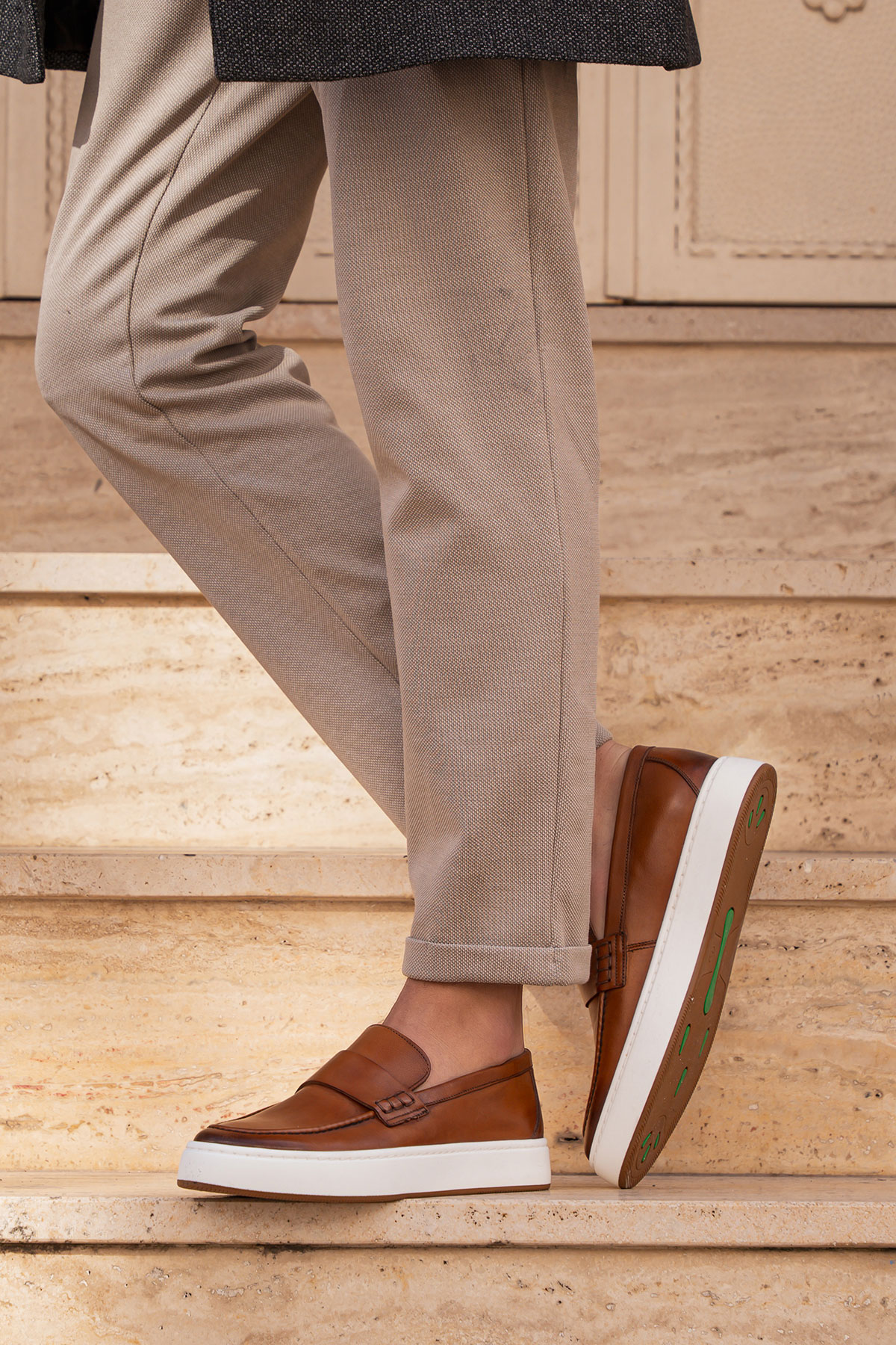 حذاء رجالي من الجلد الطبيعي بنعل سميك. هذا الحذاء الرجالي المبتكر، الذي تجمع فيه بانوراما (Panorama) بين الأناقة الكلاسيكية وأسلوب الشارع الحديث، يعكس صيحات الموضة اليوم بشكل لا تشوبه شائبة. في حين يضفي التصميم الأيقوني في الجزء العلوي جواً رزيناً ونخبوياً على الموديل، فإن النعل الأبيض السميك والديناميكي في الأسفل يجدد الحذاء على الفور ويجعله مناسباً للاستخدام اليومي. يتيح هذا الموديل، المصنوع بالكامل من الجلد الطبيعي من الدرجة الأولى من الداخل والخارج، لقدميك التنفس طوال اليوم، ويمنع التعرق، ويتكيف تماماً مع شكل قدمك، مما يوفر راحة تدوم طويلاً. توفر مادة EVA المستخدمة في تقنية النعل المبتكرة خفة تشبه الريشة وتوسيداً ممتصاً للصدمات، بينما توفر مادة TPR ثباتاً إضافياً على الأرض ومتانة. هذا الموديل، الذي يمكن ارتداؤه وخلعه بسهولة بفضل بنيته العملية بدون أربطة (سهل الارتداء - Slip-on)، هو حذاء كلاسيكي متعدد الاستخدامات سيرتقي بأسلوبك إلى القمة.