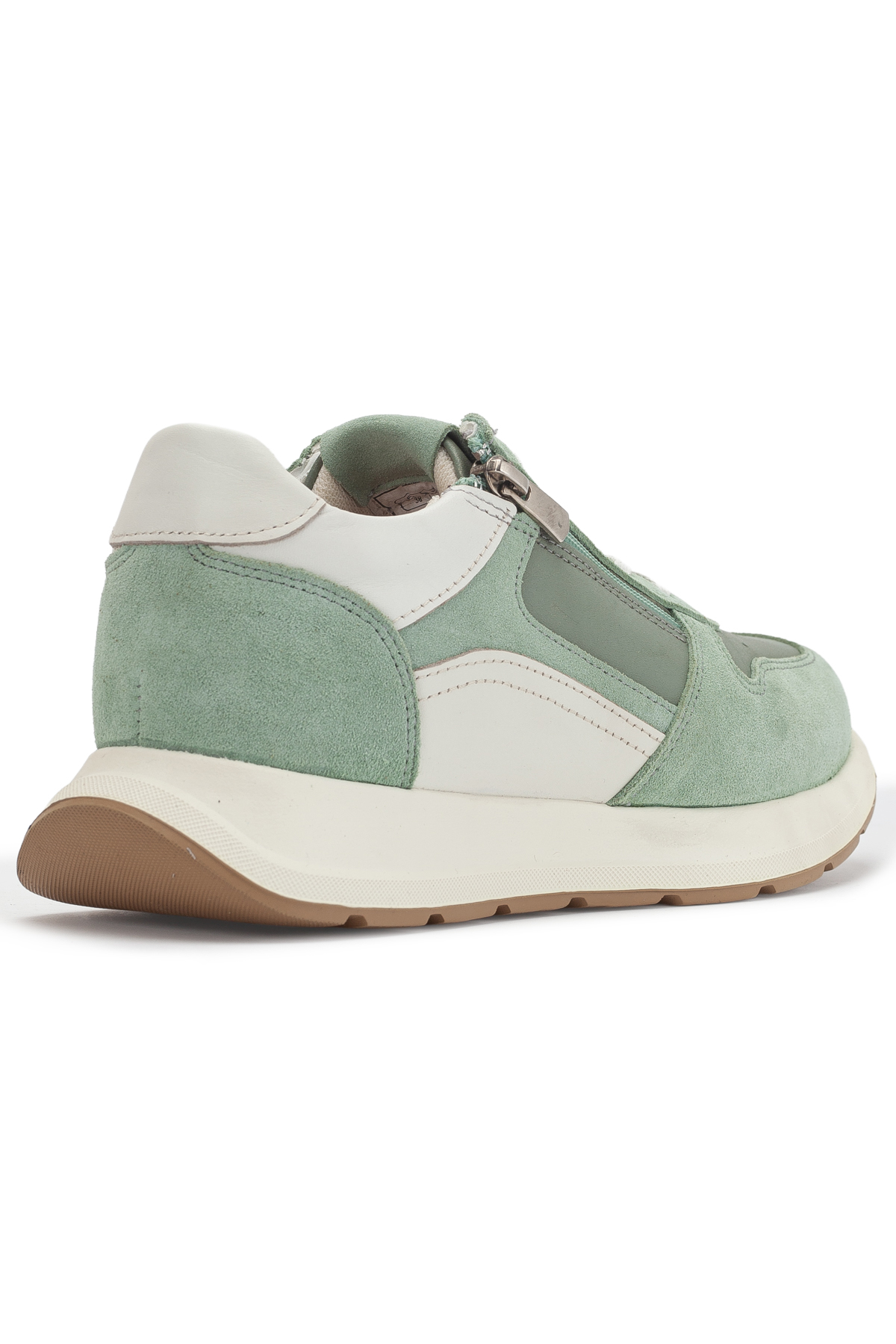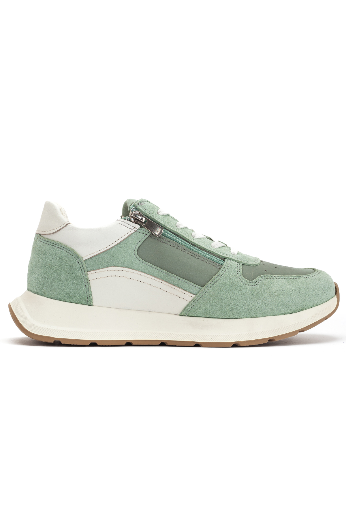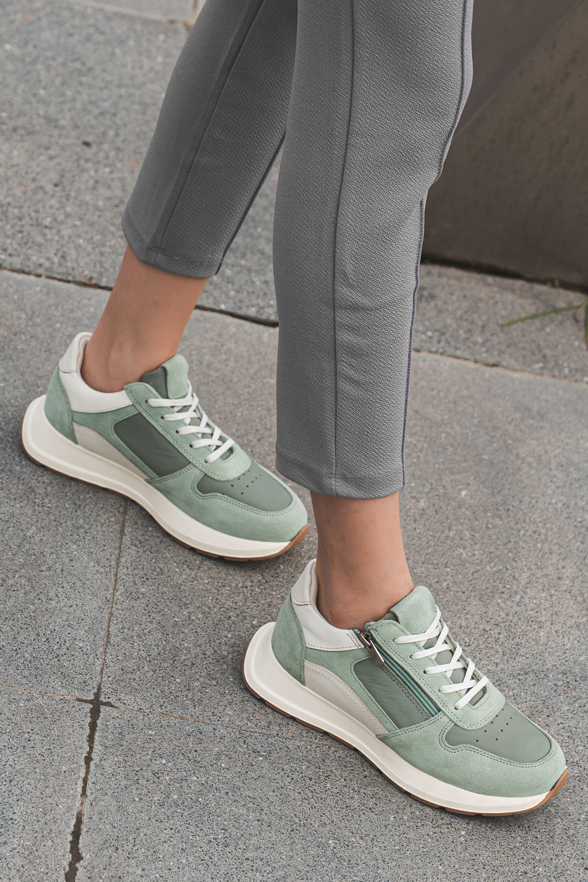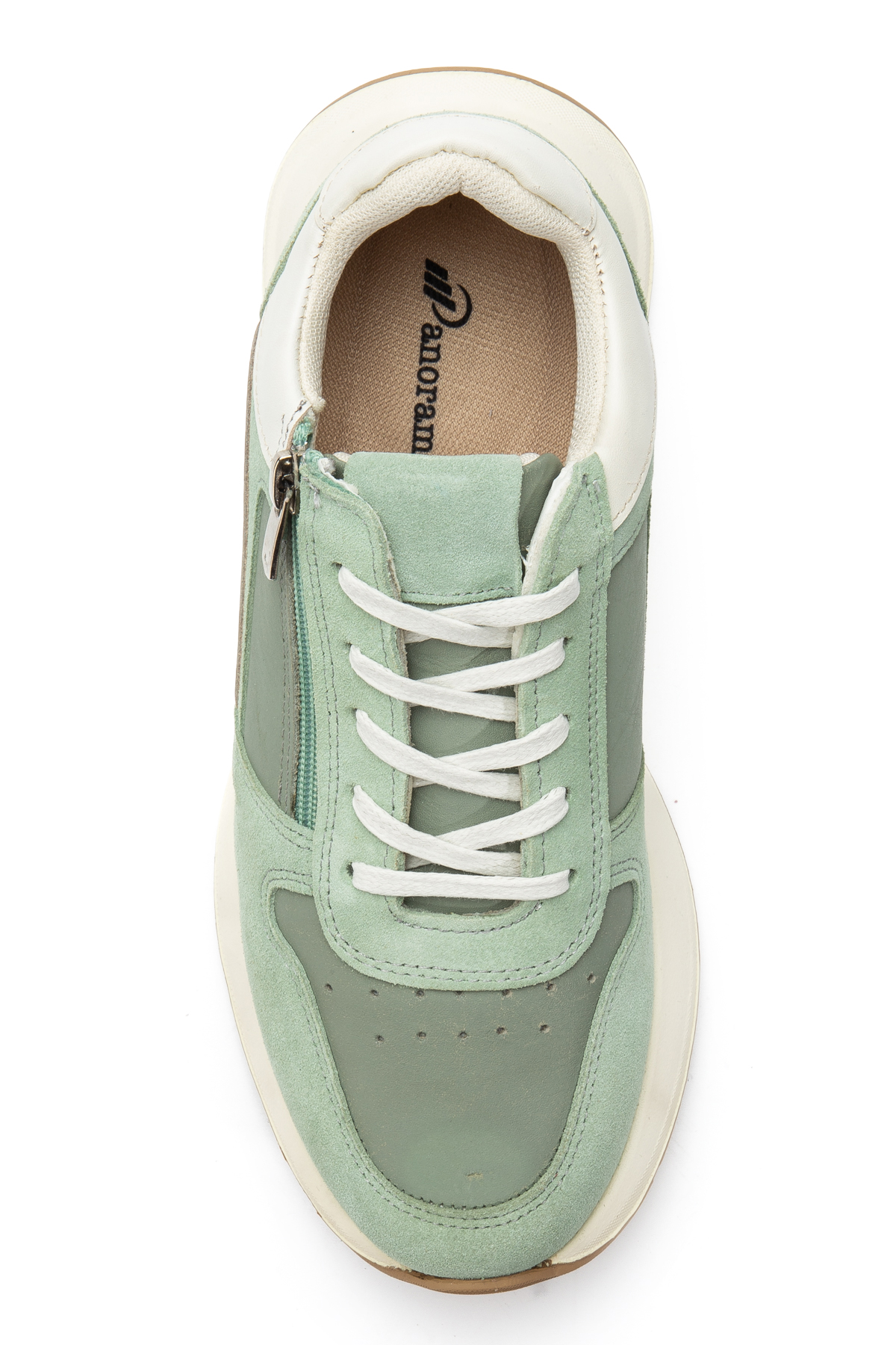 سنيكرز نسائي من الجلد والشامواه بسحاب جانبي. يتميز هذا الموديل من السنيكرز النسائي بتصميم بانوراما (Panorama) العملي والديناميكي، ويتكون من تناغم أنيق بين الجلد الأملس ومواد الشامواه الأنيقة. بفضل تفصيل السحاب العملي الموجود على الجانب الخارجي بالإضافة إلى نظام الأربطة القياسي، يمكنك ارتداء الحذاء وخلعه بسهولة دون التعامل مع الأربطة، مما يوفر الوقت في صخب الحياة اليومية. تساعد البطانة النسيجية التي تسمح بمرور الهواء والمستخدمة في الداخل على بقاء القدمين في راحة وانتعاش طوال اليوم. تُظهر تقنية نعل البولي يوريثان (PU) المتينة والخفيفة الموجودة في الأسفل مظهراً رياضياً بينما تعمل على توسيد الخطوات وتقليل تأثير الأرض وتوفر راحة إضافية أثناء المشي.