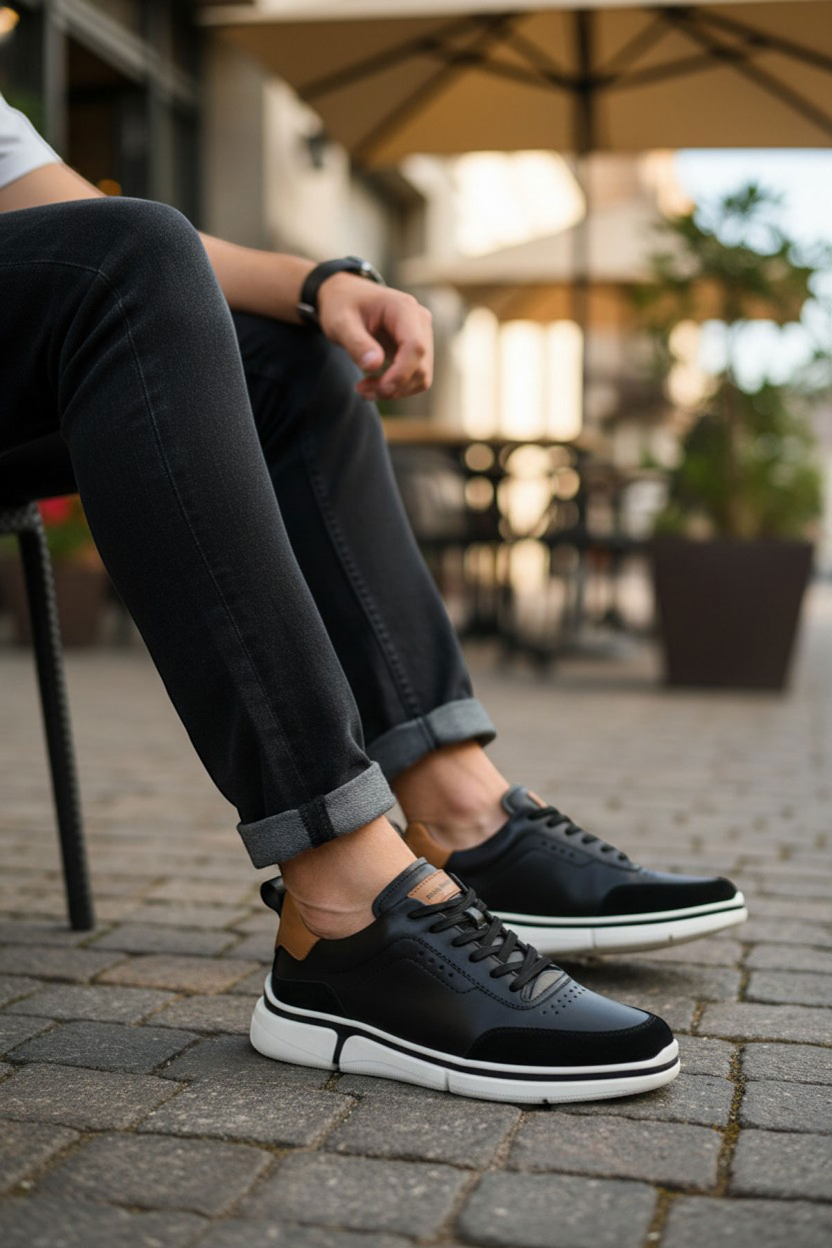 Bağcıklı Erkek Sneaker Hakiki Deri İç Dış EVA Taban. Şehir hayatının dinamizmine ayak uyduran bu model, %100 hakiki deri iç ve dış yapısıyla ayak şeklini alarak kişiselleştirilmiş bir konfor sunar. Nemi dışarı atan doğal deri astarı terlemeyi önlerken, ultra hafif EVA taban her adımda yumuşak bir basış hissi verir. Pratik bağcıklı tasarımı ile ayağı mükemmel kavrayan bu...