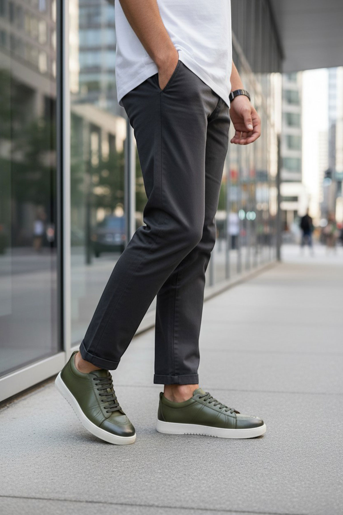 Premium İç Dış Deri Günlük Erkek Sneaker. Hem iç astarında hem de dış yüzeyinde birinci sınıf hakiki deri kullanılarak özenle tasarlanan bu premium erkek sneaker modeli, şıklığı ve uzun süreli konforu bir araya getiriyor. Doğal derinin nefes alabilen yapısı ayak sağlığınızı desteklerken, alt kısımdaki esnek termo (thermoplastic) taban yüksek zemin tutuşu sağlayarak adımlarınızı güvenle atmanıza yardımcı olur. Termo tabanın dış etkenlere karşı ekstra dayanıklı yapısı, ayakkabının ömrünü uzatır. Bağcıklı ve modern silüeti sayesinde ister ofis şıklığınızla ister hafta sonu rahatlığınızla mükemmel bir uyum yakalar.