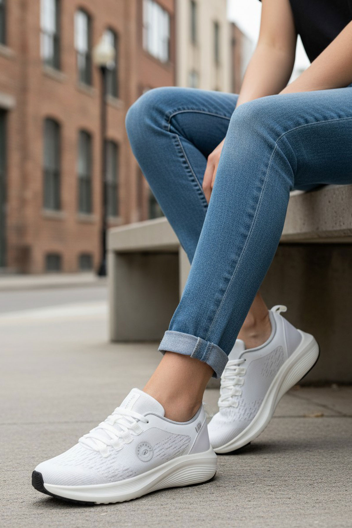 Легкие женские кроссовки City. Эти современные женские кроссовки, разработанные Panorama с вдохновением от динамичной городской жизни, дарят вашим шагам ощущение ходьбы по облакам в течение всего дня. Обеспечивая постоянную свежесть ваших ног благодаря специально сотканной, дышащей текстильной (сетчатой) верхней поверхности, их стильный дизайн со шнуровкой идеально облегает ногу. Инновационная технология толстой подошвы Thermo EVA, лежащая в основе модели, минимизирует усталость благодаря своей ультралегкой структуре и поддерживает ваши шаги своей гибкостью. Спешите ли вы в напряженный рабочий день или идете на непринужденную кофейную паузу в джинсах в выходные; этот элегантный и удобный дизайн станет незаменимой звездой любого наряда.